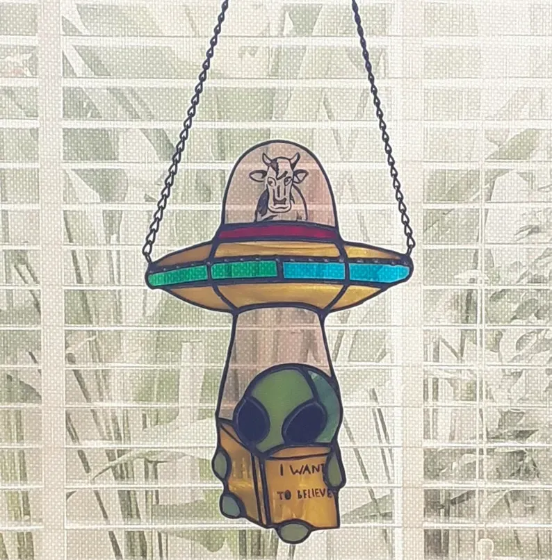 🤣Ever wonder where aliens come from? Meet the Alien Egg UFO Stained Suncatcher! This extraterrestrial decoration will add some intergalactic humor to your space. 👽