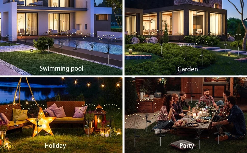 Swing When The Wind Blows: The most unique solar decorative lights on the market, our solar powered firefly light are supported by very soft and flexible wires, so when the wind blows, the lights will swing and you'll be happy to see how beautiful they are super unique solar light that you can't see anywhere else.