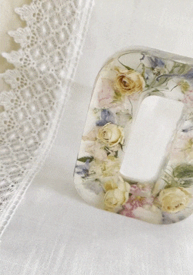 Width: Determined by the letter ratio - Materials: Epoxy resin, real dried flowers, dried flowers, mica powder, colored mica powder