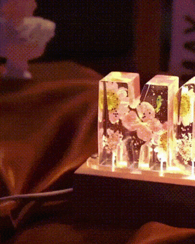 Light up your room with the enchanting glow of our Floral Night Light, carefully crafted from dried flowers encased in crystal clear resin. This personalized alphabet design adds a touch of nature and elegance to any room, making it a perfect gift or unique decor piece.