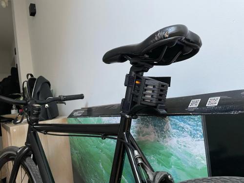 The foldable lock fits inside any sized bag and can be attached to the bike frame in two ways.